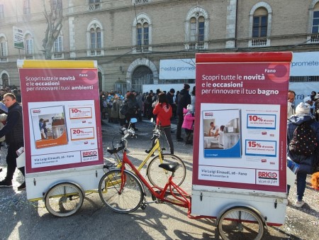 Siamo gli unici nella provincia ad offrire questo servizio, completamente ecologiche le nostre bici vela permettono di portare la tua pubblicità letteralmente dentro ogni zona della città anche durante manifestazioni o eventi, sempre condotte dal nostro personale che può anche svolgere promozione in loco consegnando volantini a mano indossando eventualmente indumenti personalizzati.